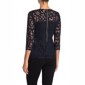 Brand New With Tags, Nanette Lepore Lace V-Neck 3/4 Sleeve Scalloped Top in size small. Perfect for date night, this pretty lace blouse charms with 3/4 length sleeves and a scalloped hem. Bodice is lined, sleeves are not. Gorgeous lace pattern.