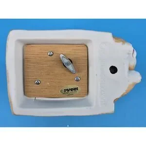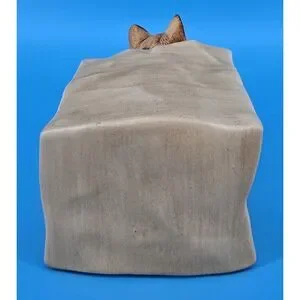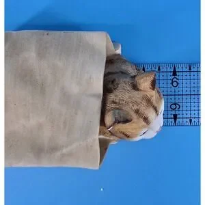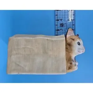 The Vintage Mann Music Box Cat Paper Bag plays "Memories" from the musical "Cats" and features a cute orange kitten. Made in Japan in 1982, this ceramic Porcelain music box is a charming collectible item for music box enthusiasts and cat lovers alike. The intricate details and nostalgic tune make it a delightful addition to any decorative collection.