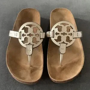 Tory Burch Miller Cloud sandals with Mettalic Gold and Tan.