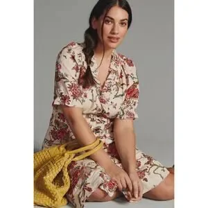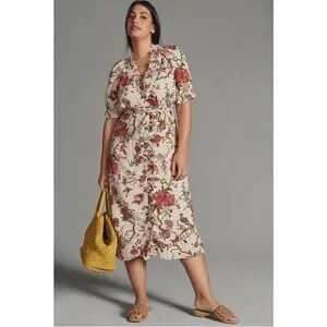 Anthropologie Pilcro Ruffle Collar Button down Dress Floral Plus Size 22W Linen