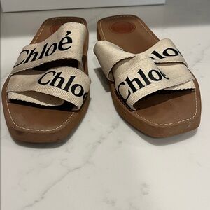 CHLOE: Woody Flat Slides in Black & White