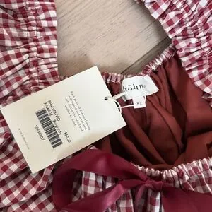 Charming gingham mini dress. Puff sleeves. Ribbon bow detail at neckline. NWT, never wore! I’m 5’6 for length reference!