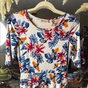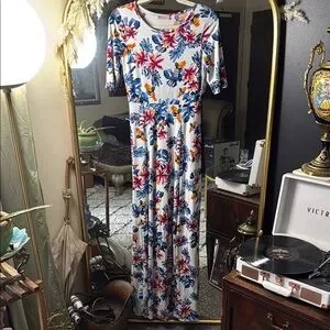 Elegant floral maxi dress featuring vibrant colors. Perfect for any occasion. So soft, comfy, and flattering. M/L