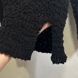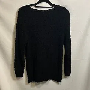 Stay warm and stylish with this cozy black popcorn sweater. Perfect for any occasion.