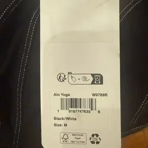 Structured black ALO Yoga sports bra. White contrast stitching outlines panels and straps. Wide supportive straps for comfort. Great for anytime of work out.