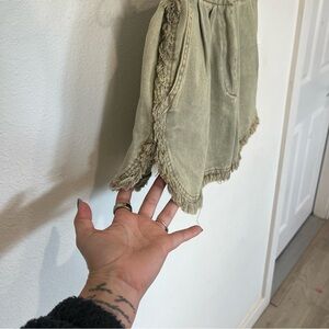 Army green distressed shorts. New with tags. Super cute high low detail on the sides.