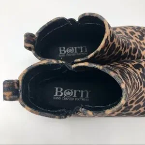 Born Remo Brown, Tan and Black Leopard Animal Print Fabric Pixie Booties Size 6
