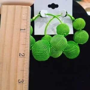 Add a pop of color to your outfit with these vibrant green hoop earrings. Perfect for any occasion.