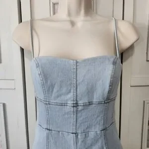 Saints & Secrets Denim Midi Dress Women XS AU6 Bodycon Spaghetti Strap Light Y2K