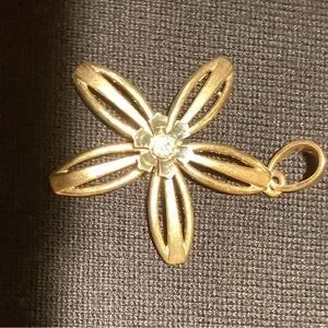 This listing is for an Elegant gold-tone flower pendant with a clear rhinestone center accent. Lightweight and versatile for everyday wear. Adds a polished, feminine touch to any outfit and any necklace. About 2” top to bottom. Happy Poshing!