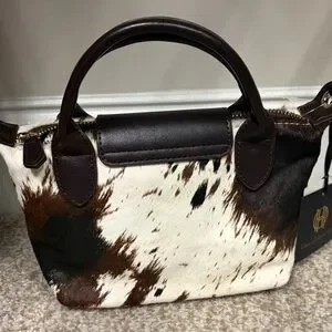 NWT House of Harlow Brown White Black Genuine Cow Hide Leather Le Pliage Bag
