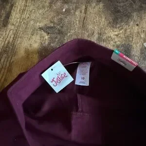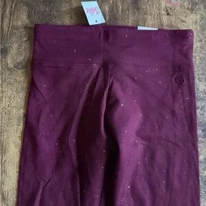New Justice Burgundy Glitter Full Length Leggings Girls 10 NWT