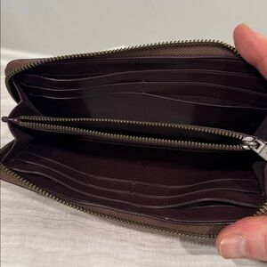 This bag is in great used condition! Please see all pictures for minor signs of use. This bag also includes the zip around wallet. Please note that the wallet shows a small light wear mark on the back… Please see last photo.