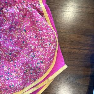 Nike Dri-FIT Women’s Running Shorts Bundle Size Small in excellent used condition. This colorful athletic set includes two pairs of lightweight running shorts with built-in liners, breathable mesh panels, and an elastic waistband for a comfortable fit. Designed with Nike’s Dri-FIT technology to help keep you cool and dry during workouts, running, or everyday activewear. Bright splatter print colors make these both fun and functional for the gym, track, or casual wear.