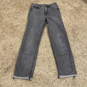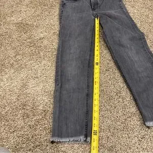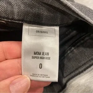 Y2K Express Faded Black Frayed Hem Mom Jeans Size 0 Super High Rise