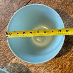 Elegant set of two light blue “splash proof” Fire King mixing bowls. Vintage 1950s