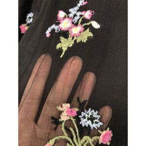Sundance Women Fleur Flare Floral Embroidered Blouse M Black Professional Church