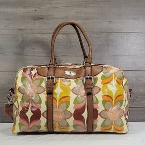 Fossil Key-Per Multi-color Floral Coated Canvas Weekender Bag