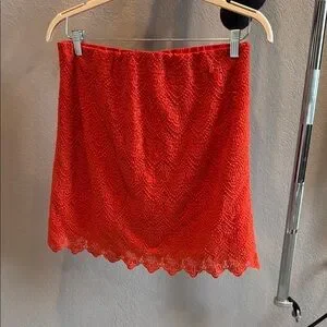 This eye-catching orange mini skirt from J. Crew boasts a chic A-line silhouette, ideal for cocktail events. Its vibrant hue and stylish cut make it a standout choice for any casual or night out occasion. The skirt's mini length adds a modern and playful touch to your ensemble. Length is 17 inches.