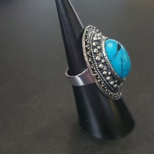 Silver tone ring with blue