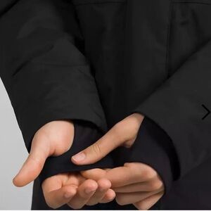 • Stretchy fabric cuffs, with thumb holes.