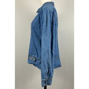 Christopher & Banks Denim Jacket Womens Medium Embroidered Floral Accents Zip