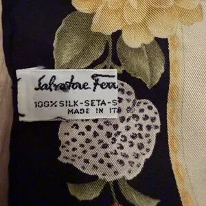 Vintage Salvatore Ferragamo Silk Scarf | Equestrian Floral Print | 34” x 34”