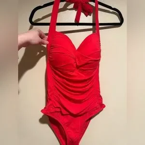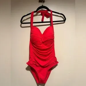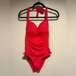 Liz Claiborne One Piece Swimsuit red halter women’s 12