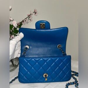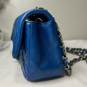 Chanel Mini Rectangular Flap Bag Quilted Lambskin Blue/ Gold Hardware