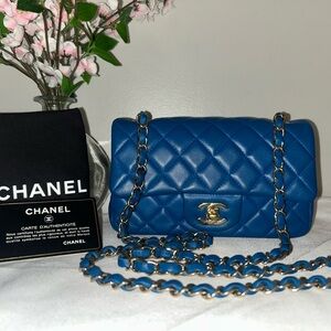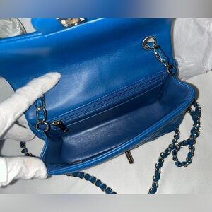 CHANEL Classic Mini Rectangular Flap Bag Quilted Lambskin Blue / Gold
