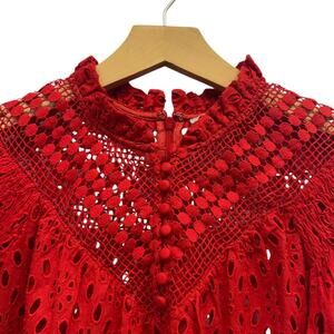 Allsaints Short Puff Sleeves Tila Eyelet Top in Red size US 2
