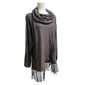 New York Collection Sweater Poncho W/Fringes Sweater Gray Color Sweater Size M