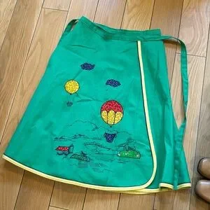 Vintage 70s wrap skirt hot air balloon patchwork green circle skirt