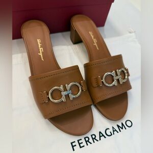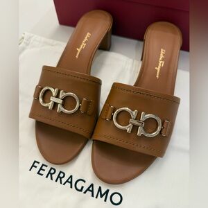Salvatore Ladies Brown Rhodes Gancini Heel Sandals, Size 9.5