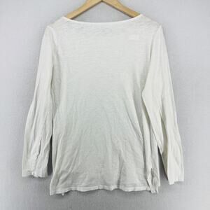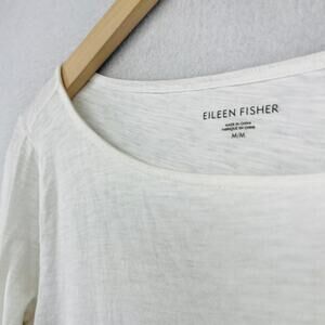 EILEEN FISHER Top M Slub Jersey Organic Cotton Boat Neck Long Sleeve White