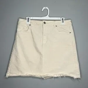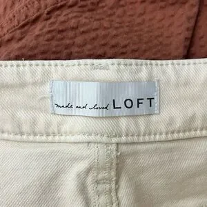 Made and Loved LOFT White Cream Denim Distressed Jean Skirt DD
