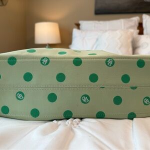 Dooney & Bourke Green Polka Dot Tote Bag with Tan Leather Handles And Tassels