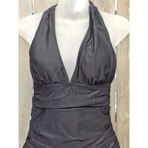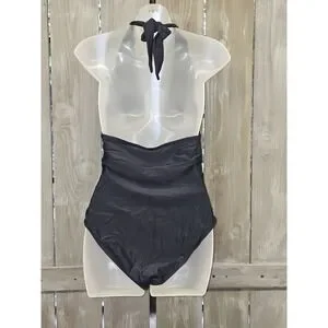 NWT Cupshe Pool Party Shirred Front Black One Piece SwimsuitSize Medium
