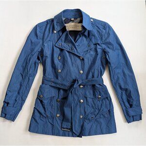 Burberry Brit Blue Women’s Sz 12 Double Breasted Short Trench Coat Lightweight