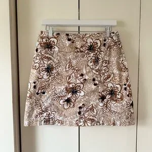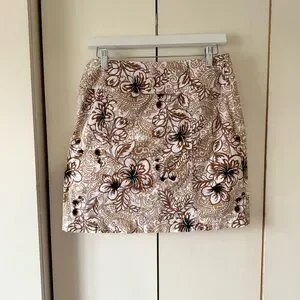 White Stag Stretch Mini Skort Brown Floral Mini Skirt Tropical 97% Cotton Size 6