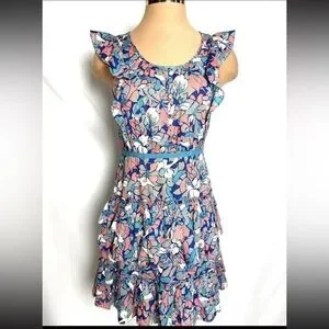 MARC by MARC JACOBS Y2K 100% Cotton Floral Ruffle Tiered Tie Back Mini Dress 6