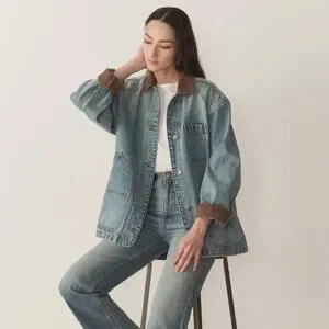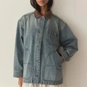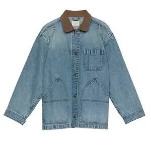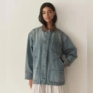 NWT Doen Pascual Cotton Denim Jean Corduroy Collar Barn Jacket Deveraux Wash