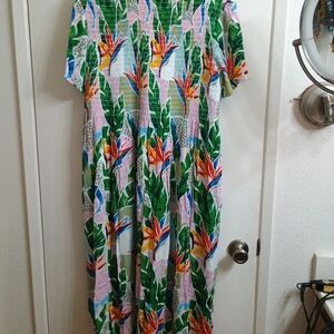 Green and Pink Tropical Print Sundress Maxi