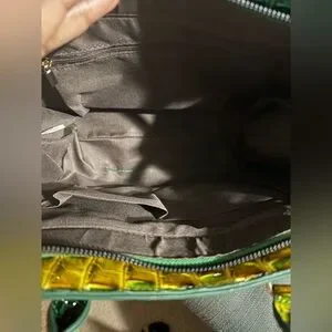 Elegant Green and Yellow Crocodile Pattern Handbag Set NWT