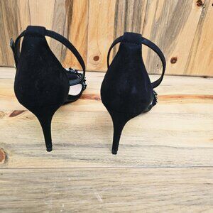 Kelly & Katie “Kirstie” Black Tweed Pearl Ankle Strap Heels