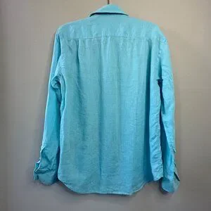 VILEBREQUIN Solid Linen Shirt Mens M Medium Blue Button Up Resort Beachwear