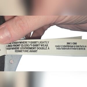 The Victoria's Secret Pink Wear Everywhere T-Shirt Bra in 36C is a lightly lined bra featuring the signature logo print. It has a multiway strap type with a snap closure for a comfortable fit. Made from a polyamide blend material, this underwired bra in black color is designed for everyday wear. With features like stretch fabric, adjustable straps, and front closure, this designer bra combines style and functionality for women looking for a supportive yet comfortable undergarment.