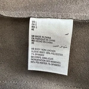 • Material: Faux Leather Body; Sleeve Insert 99% Polyester, 1% Spandex