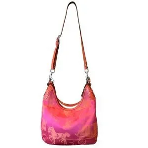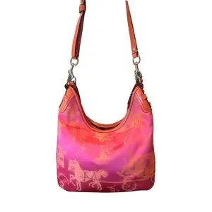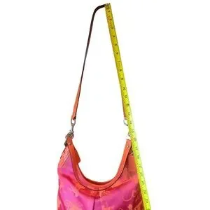 Coach Hot Pink and Coral Satin Signature Hobo