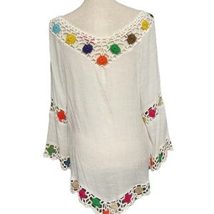 Ana & Rose White Multicolor Crochet Trim Women's Tunic size XL